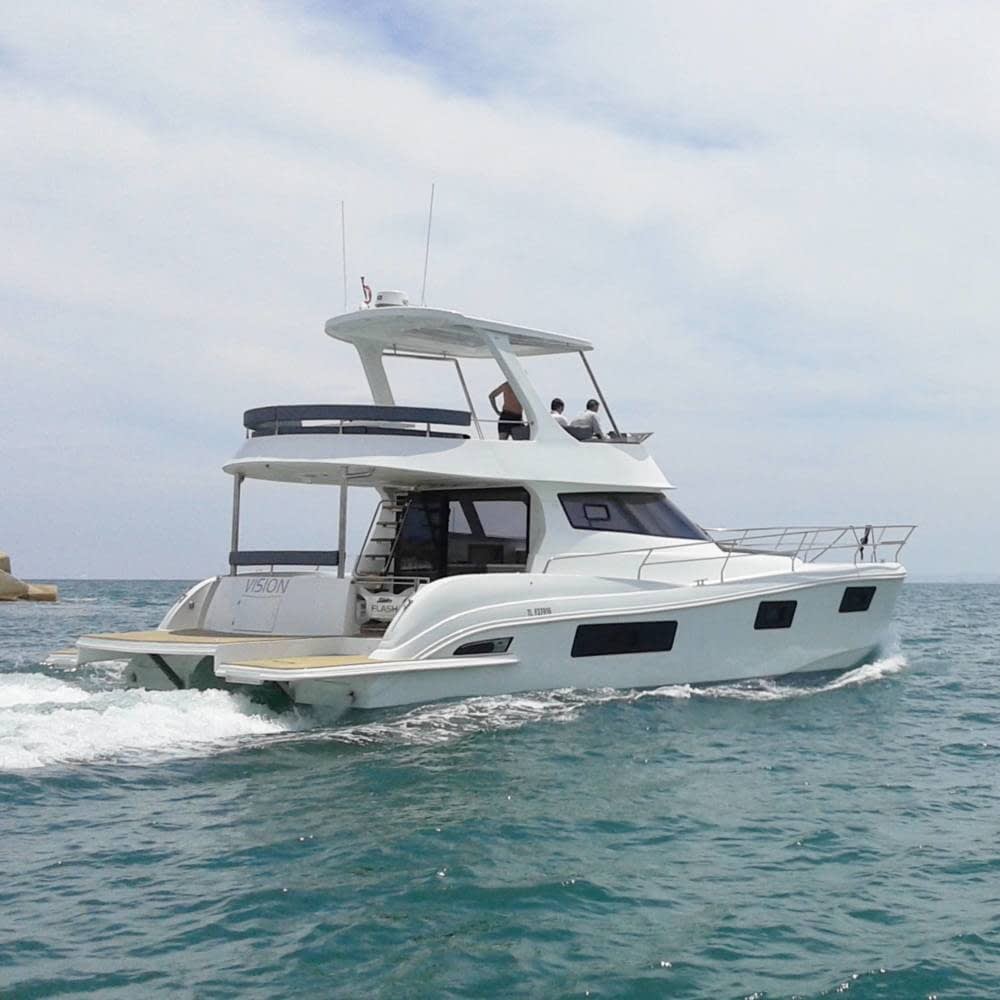 Embárcate en una experiencia única a bordo del Flash Cat 43 S, un catamarán a motor diseñado para disfrutar del sol y el mar al más puro estilo mediterráneo. Gracias a su amplia manga y sus grandes espacios exteriores, relájate en el solárium de proa, comparte momentos en cubierta y disfruta de la navegación con total comodidad mientras suena tu música favorita a bordo.
